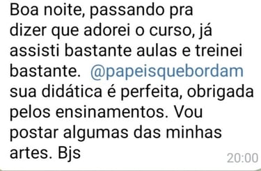 O foco principal do curso é o seu bem-estar e o aprendizado da técnica de bordado no papel. Mas é claro: se você quiser vender suas criações, isso é totalmente possível! Apesar de não ser um curso de empreendedorismo, ao compartilhar seus bordados, é comum surgirem oportunidades de venda — e eu incentivo muito que você aproveite essas possibilidades, com leveza e sem cobranças por alto desempenho.