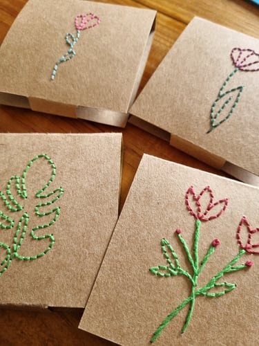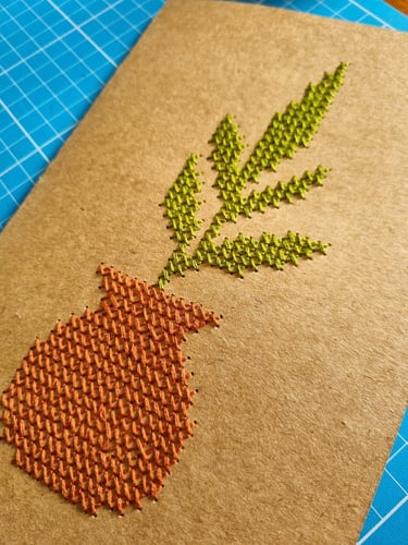 Além de aprender uma nova habilidade, o bordado no papel ajuda a diminuir o estresse e a ansiedade, melhora a concentração e proporciona momentos de autocuidado e atenção plena.